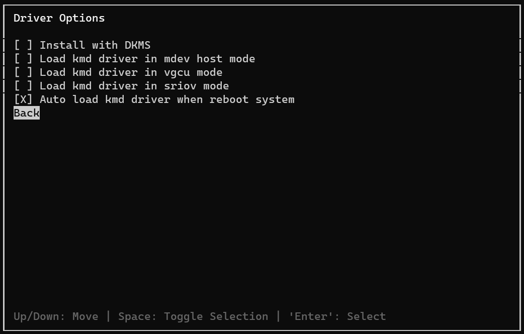 选择 Driver Options ,并点击回车键,会进入驱动安装高级选项。
