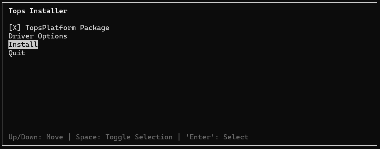 TopsInstaller 提供 交互式操作界面安装 和 静默安装。 无论哪种方式,如果需要安装驱动软件,请使用 --driver 参数。